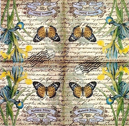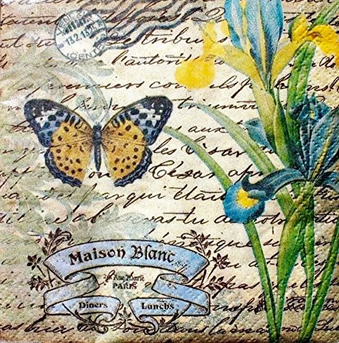 Paris "Maison Blanc" Butterfly & Iris Cocktail Beverage Paper Napkins ~ Pack of 24