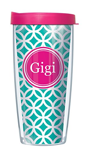Gigi On Teal Roundabout Wrap Traveler 16 Oz Tumbler Cup with Pink Lid