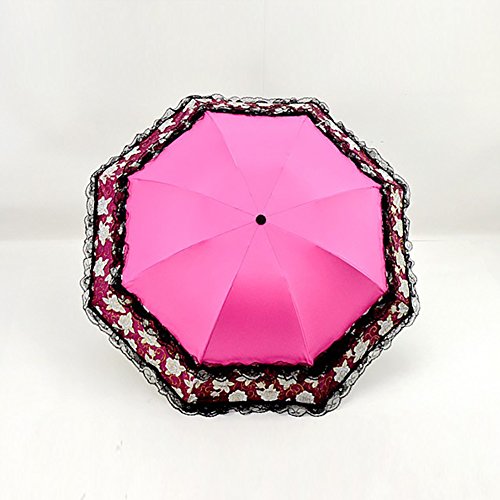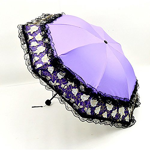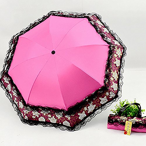 Description: Item type: All-weather Umbrella Type: Triple Folding Application: Outdoor Style: Sweet Crowd: Female Color: Pink/Violet/Rose red/Blue Size: 55cm*8K,diameter 96cm(open),64cm(closed) Weight: 310g Fashion element: Double Lace Trim Feature: Anti-Uv/Sunproof/Windproof/Rainproof SPF: UPF £¾50,£¨UVA£ⓒAV£¼5% Suit for season: All year around Umbrella surface material: High density pongee Lace Rib/Rod material: Galvanized steel Set include: 1 * All-weather Umbrella 0 |