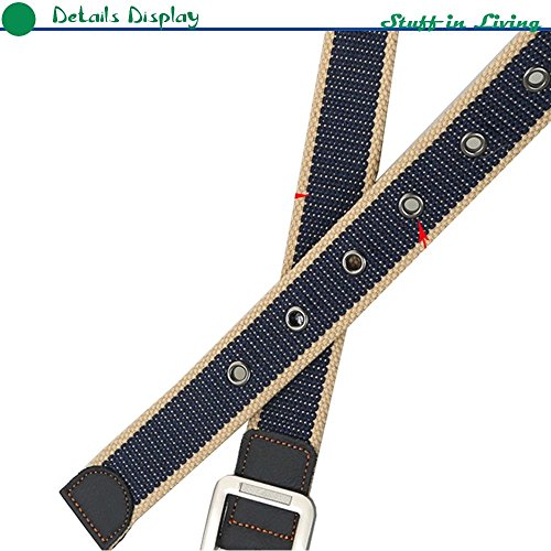-. Binding : Apparel -. Brand : Stuff in Living Wholesales -. Department : mens -. Feature : 9 Grommets and Enameled Buckle with Single Prong / Thickness Canvas, Strong and Durable / Rich Colors for Your Choosing to Match with Your Any Outfit / Both Ends Wrapped with Genuine Leather / Approximate Length: Small Size-39", Medium Size-43", Large Size-49" -. PackageQuantity : 1 -. ProductGroup : Apparel -. ProductTypeName : ACCESSORY -. Title : Military Style Unisex Single Grommet Canvas Belt Web Belt Woven Belt for Men and Women