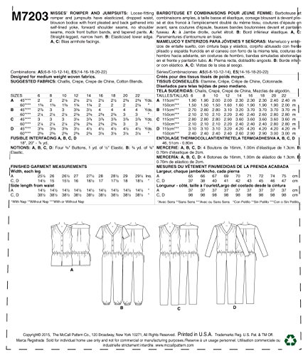 -. Title : McCall's Patterns M7203 Misses' Romper and Jumpsuits Sewing Template, E5 (14-16-18-20-22)