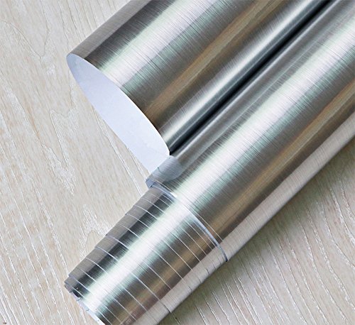 Brushed Metal Look Contact Paper Film Vinyl Self Adhesive Backing Waterproof Metallic Gloss Shelf Liner Peel and Stick Wall Decal for Covering Counter Top Kitchen Cabinet (24 X 78.7 inch, Silver)