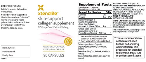 -. Title : Skin-Support by Xtend-Life with Clinically Proven Marine Collagen and Elastin Polypeptides, and New Zealand Grape Seed Extract - 90 Capsules