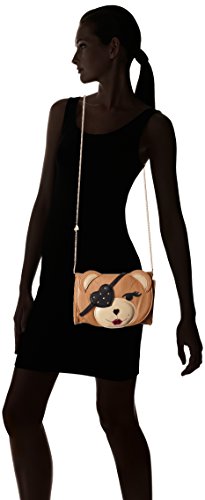 Quilted faux leather bag featuring fun-loving bear face with eye patch applique, faux gem beauty mark, and logoed heart nose