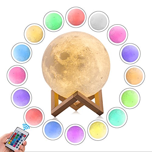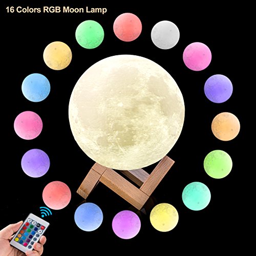 - BRILLIANT DESIGN-2018 Newest Upgrade 16 Colors moon night light is a remote-control LED colored Lamp,including 16 color RGB,flash and fade modes.You can use the remote control to change the color and also adjust the brightness of the color.Control the MOON whatever you want!