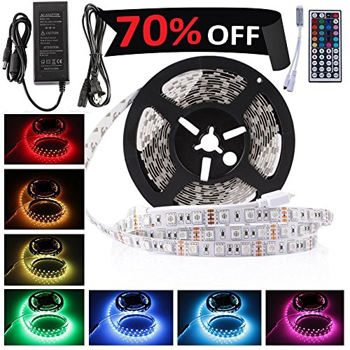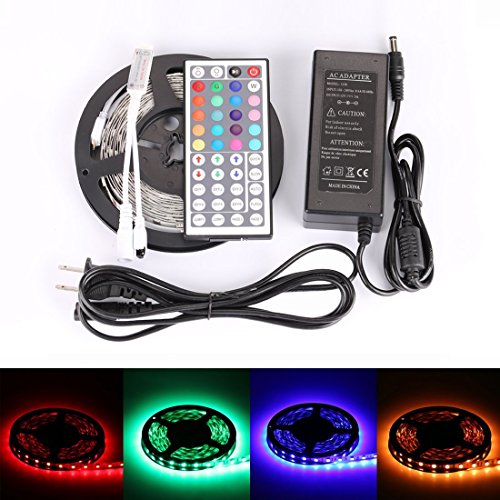 LEDMO 5050 RGB LED Strip Kit with 300-Piece 12V DC LEDs, Remote Control, Power Supply and Ribbon - 16.4 Feet (5 Meters)
