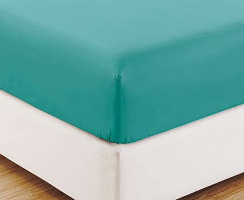 Twin XL size, TURQUOISE BLUE Solid Fitted Bed Sheet-Super Silky Soft-SALE-High Thread Count Brushed Microfiber-1500 Series-Wrinkle, Fade, Stain Resistant, Deep Pockets, 100%