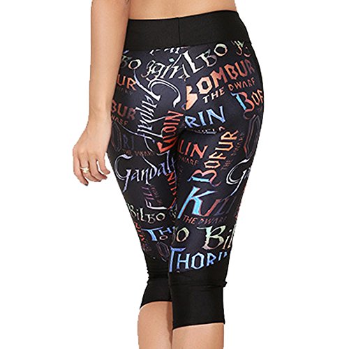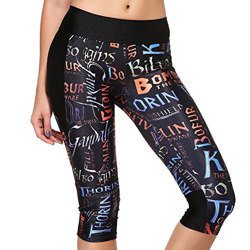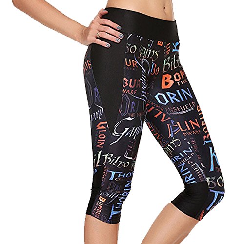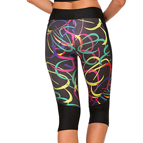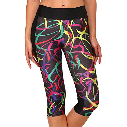 RedExtend® Womens 3D Digital Print Yoga Running Workout Capri Stretch Pants (Small, Ticker Tape-Black)