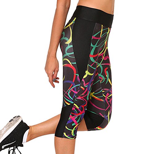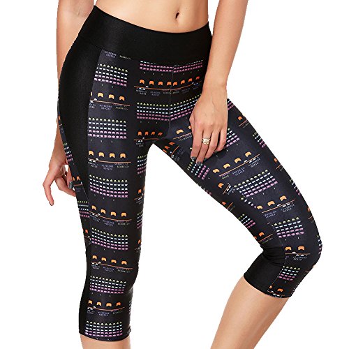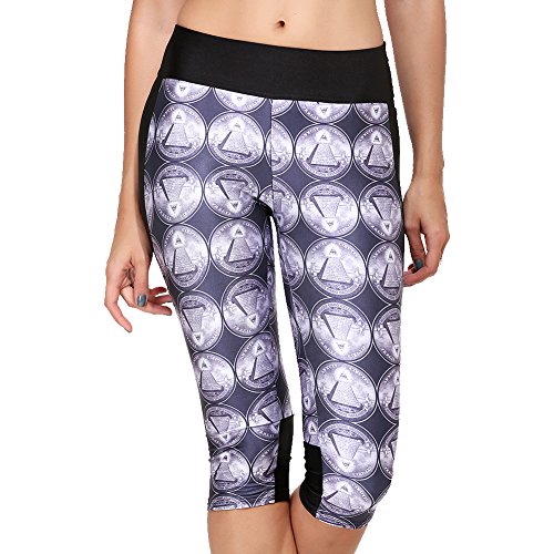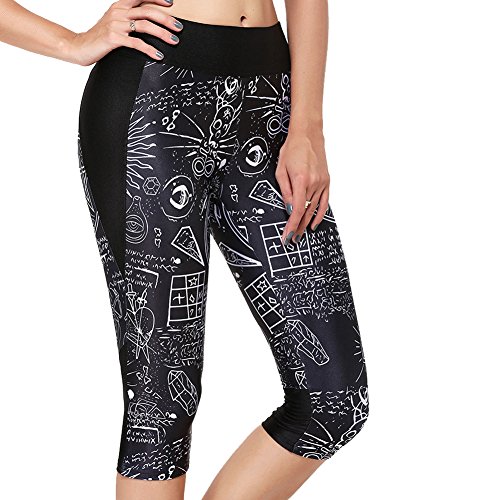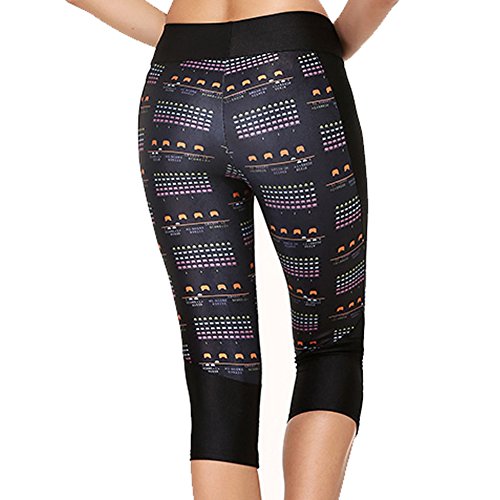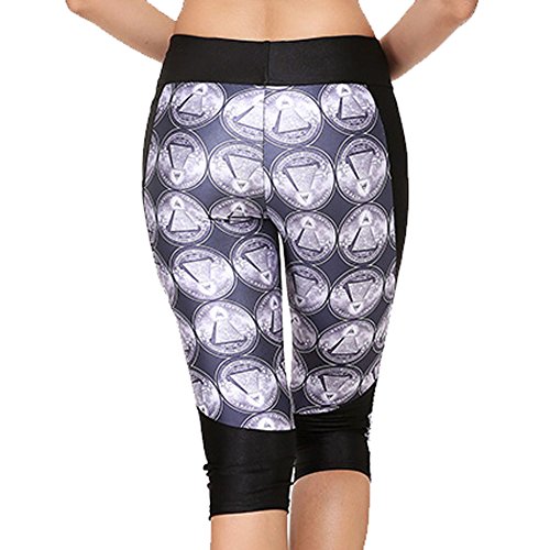 RedExtend® Womens 3D Digital Print Yoga Running Workout Capri Stretch Pants (Medium, Ticker Tape-Black)