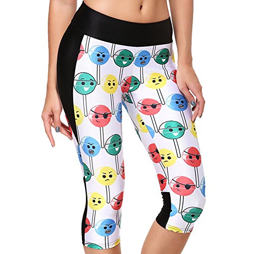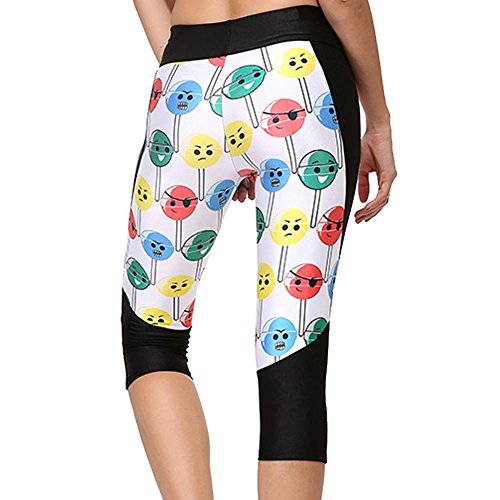 RedExtend® Womens 3D Digital Print Yoga Running Workout Capri Stretch Pants (Small, Ticker Tape-White)