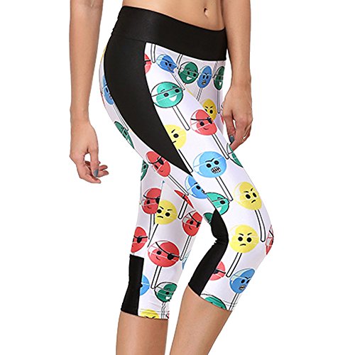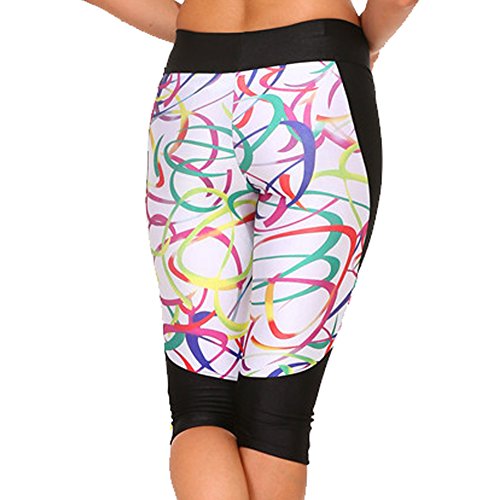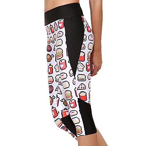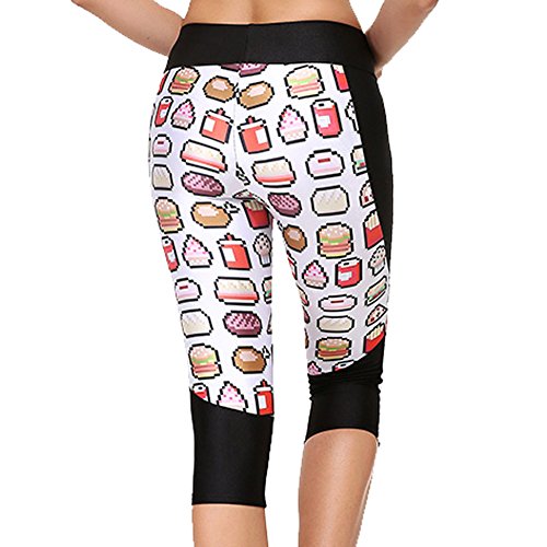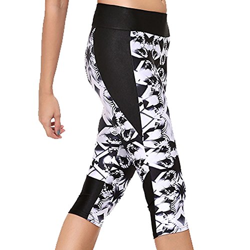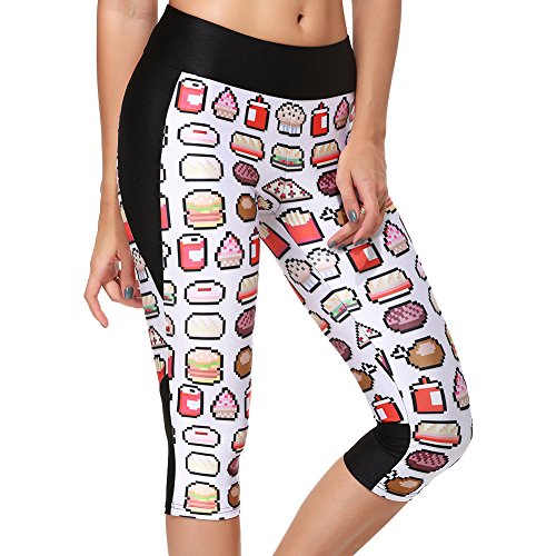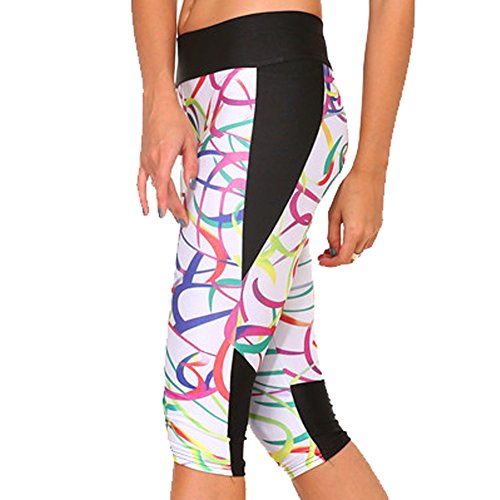 RedExtend® Womens 3D Digital Print Yoga Running Workout Capri Stretch Pants (Medium, Ticker Tape-White)