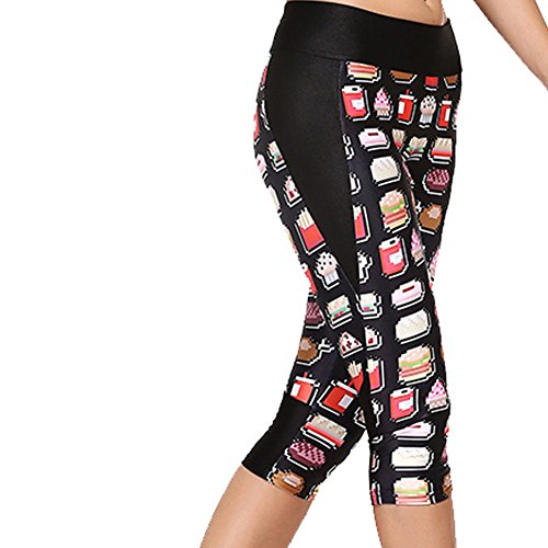 RedExtend® Womens 3D Digital Print Yoga Running Workout Capri Stretch Pants (Large, Ticker Tape-Black)