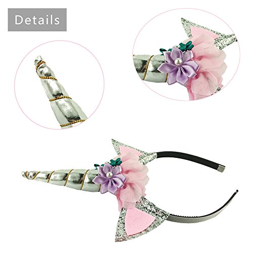 Unicorn Horn Headband Flowers Ears Headbands for Party Decoration or Cosplay Costume