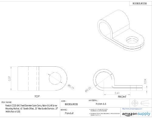 Panduit CCS25-S8-C Fixed Diameter Cable Clamp, Nylon 6.6, Natural, #8 Screw Mounting Method, 0.41" Bundle Offset, 0.25" Max Bundle Diameter, 0.37" Width (Pack of 100)