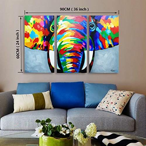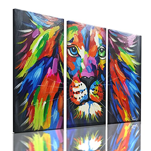 Fasdi-ART Oil Painting 100%Hand-painted Art Knife decoration 3D Abstract canvas Animal Gift painting on wood frame 12x24inchx3pieces (A002)