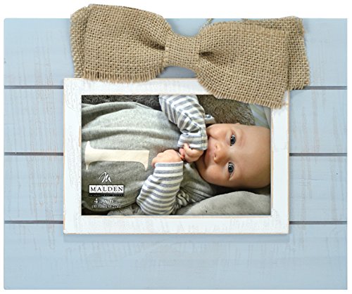 Malden International Designs Burlap Bows With Burlap Bow Attachment Wooden Picture Frame, 4x6, Blue