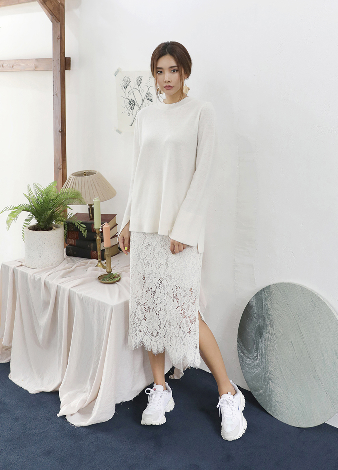 울과 캐시미어 혼방으로 부드럽고 고급스러운 무드의 소재감의 제품입니다. 구김이 많이 가지 않으며, 코트와의 코디 또는 간절기에는 단품으로 착용 추천합니다.