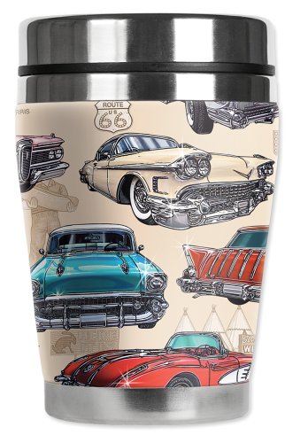 Mugzie 50's Hot Rods "Mini" Travel Mug with Insulated Wetsuit Cover, 12 oz, Black