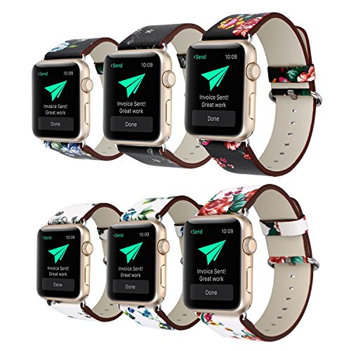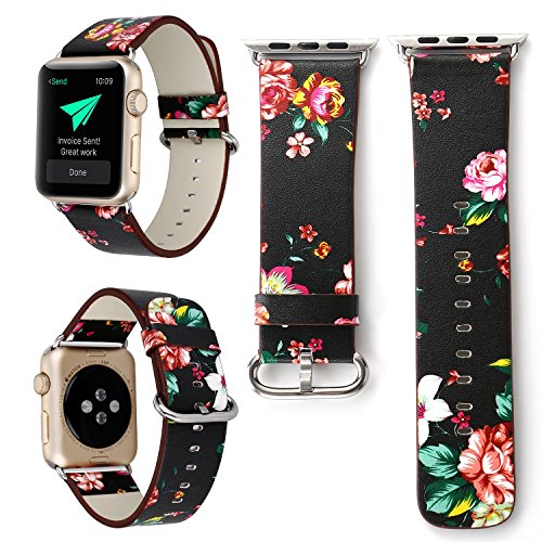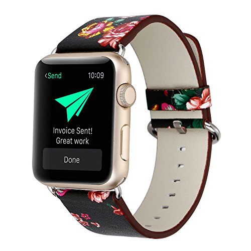 KOBWA For Apple Watch Band, Premium Leather Strap Wrist Band Replacement with Stainless Metal Clasp for Apple Watch Series 1 Series 2 All Models