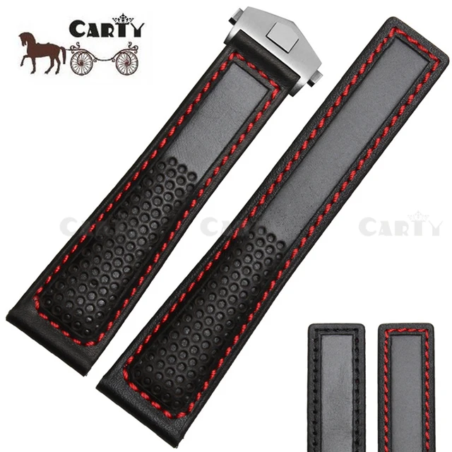 [해외]22 미리메터 블랙 레드 정품 소 가죽 공기 투과성 실버 블랙 butterfly 버클 남성 시계 스트랩 맞춤 브랜드 시계