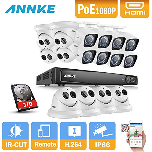-. Binding : Electronics -. Brand : Annke -. Feature : See and believe with 1080P: 2MP IP cameras works perfectly with 16CH 6MP NVR for reliable 24/7 high clarity monitoring. / Save cost with PoE: Powering the cameras via the Ethernet cables reduces your cost and simplifies the entire installation process. / Locate incident videos with smart playback: It will automatically speed through unimportant video clips and easy locate important ones for hassle-free playback. / Motion-activated alarm: When motion detection meets email alarm, an instant email will be sent to get you informed of all unexpected movements. / Anytime anywhere monitoring: What you cared most is always under your monitoring via mobile devices, thanks to the easy P2P service. -. Label : ANNKE -. Manufacturer : ANNKE -. MPN : AU-N46PIA3-68FB-68FC -. PackageQuantity : 1 -. PartNumber : AU-N46PIA3-68FB-68FC -. ProductGroup : Photography -. ProductTypeName : SURVEILANCE_SYSTEMS -. Publisher : ANNKE -. Studio : ANNKE -. Title : Annke 1080P PoE Surveillance System 16 Channel 6.0MP NVR with 3TB Surveillance Hard Disk Drive and (16) 1920TVL 2.0MP Weatherproof Cameras, Smart Search Playback, Motion Triggered Email Alert