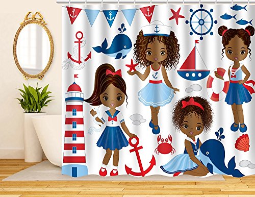 ArtRena Quality Fabric Shower Curtain, Dark Skinned, Black Girl Sailors, Waterproof and Mildew Resistant, 71" x 71"