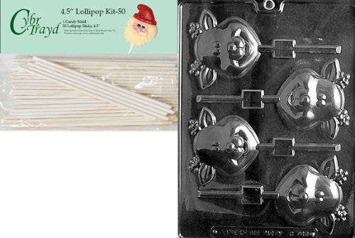 Cybrtrayd 00045St50-C448 Cute Reindeer Lolly Christmas Chocolate/Candy Mold with 50 4.5-Inch Lollipop Sticks
