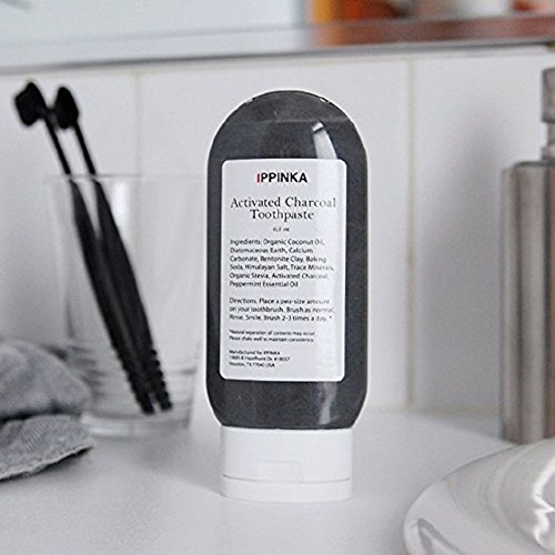 -. Feature : Activated charcoal naturally detoxifies and whitens teeth / Features himalayan pink salts that are rich in minerals to soothe sore gums / Uses organic coconut oil for its antibacterial benefits / Dimensions: 2.5 x 5.5 x 0.75"; 6.5 oz - tube lasts approximately 4 months when brushing twice a day / Depending on the type of toothbrush used, the paste may leave some residue on your brush. To prevent residue build-up, lightly spray the bristles with liquid coconut oil before applying toothpaste.