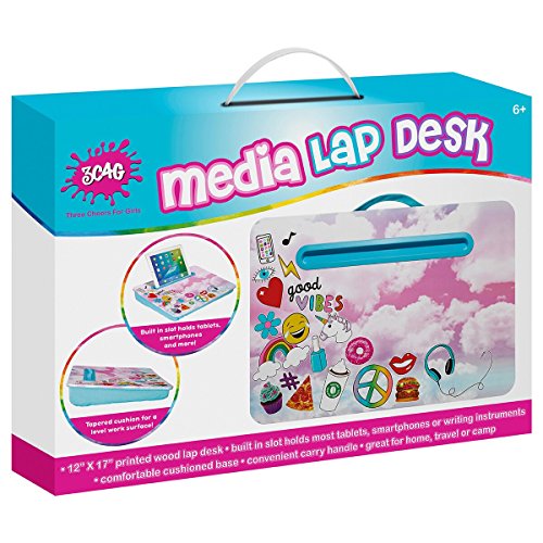 -. Binding : Office Product -. Brand : 3C4G -. Feature : MEDIA LAP DESK: P.R.Inted Wood lap desk features a built-in slot for a tablet or smartphone. Media Desk is a great support for a laptop too. / LEVEL WORK SURFACE: Desk has a matching polystyrene bead filled tapered cushion to ensure a level work surface. No matter where you have it set, you'll have a level area to make your notes or hold your media item. / FUN and FASHION: Includes a carrying handle to travel and has fashionable design. Great for use in bed, on a plane, on train, in a car or at the park. / SIZE: Desk measures 12 inches x 17 inches / BOXED: Comes packaged in a colored box with handle -. Label : 3C4G -. Manufacturer : 3C4G -. MPN : 3598 -. PackageQuantity : 1 -. PartNumber : 3598 -. ProductGroup : Office Product -. ProductTypeName : OFFICE_PRODUCTS -. Publisher : 3C4G -. Studio : 3C4G -. Title : 3C4G Media Lap Desks