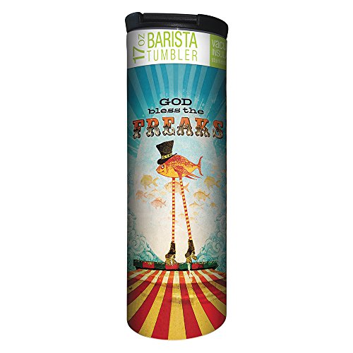 Tree-Free Greetings God Bless the Freaks Vacuum Insulated Travel Coffee Tumbler, 17 Ounce Stainless Steel Mug, Unique Coffee Lover Gift (BT20481)