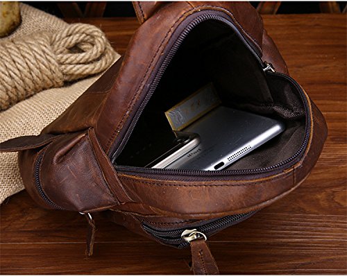 -. Feature : 【Material】High quality manufactured 100% genuine leather. Thickness and flexibility which translates into exceptionally comfortable upholstered furniture. Buffalo leather "grain" is more pronounced. The fibers are thicker and more widely-spaced / 【Dimension】:7" x 2.8" x 10.2"(L x W x H)/18 x 7 x 26cm. Shoulder strap length: 55.1"(140cm). Weight for 0.45kg(0.99lb) / 【Structure】Holds iPad mini, notes, water bottle, napkin, cellphone etc; Include 1 zipper and 1 cellphone pockets inside / 【Occasion】Very small and comfortable light for anyone anywhere, ideal for camping, cycling, fishing, hiking, running or climbing / 【Brand】You can click "DRF" or search "DRF Backpack" to see more products