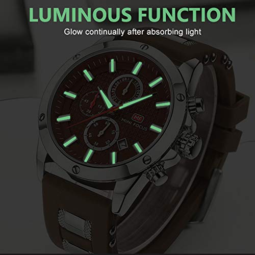Brand, Seller, or Collection Name:XANGMO Part Number:0089 Item Shape:Round Display Type:Analog Clasp:Buckle Case material:Metal Case diameter:4.60 centimeters Case Thickness:1.20 centimeters Band Material:Silicone Band length:Men's Standard Band width:2.40 centimeters Band Color:Black Dial color:Brown Bezel material:Metal Bezel function:Calendar Calendar:Date Special features:Chronograph, Luminous, Shock resistant Movement:Analog quartz Water resistant depth:30 Meters