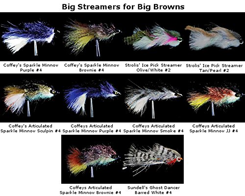 -. Feature : Big Streamers for Big Browns / Coffeys Sparkle Minnow - Purple #4, Coffeys Sparkle Minnow - Brownie #4, Strolis Ice Pick Streamer - Olive/White #2 / Strolis Ice Pick Streamer - Tan/Pearl #2, Coffeys Articulated Sparkle Minnow Sculpin #4, Coffeys Articulated Sparkle Minnow Purple #4, / Coffeys Articulated Sparkle Minnow Smoke #4, Coffeys Articulated Sparkle Minnow JJ #4, Coffeys Articulated Sparkle Minnow Brownie #4, / Sundell Ghost Dancer - Barred White #4