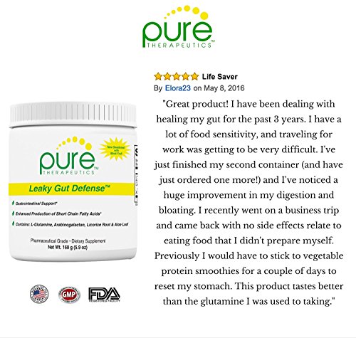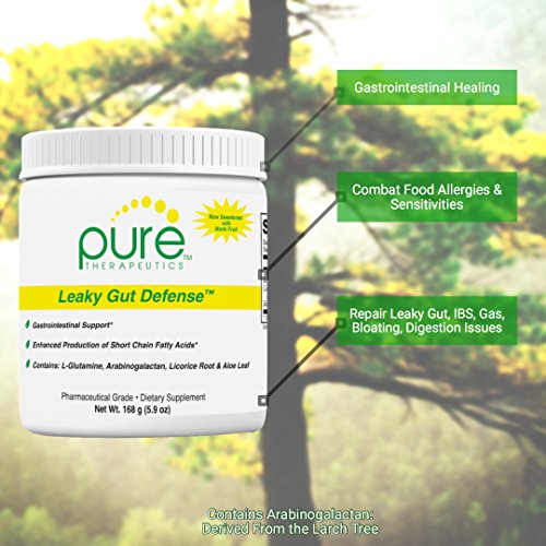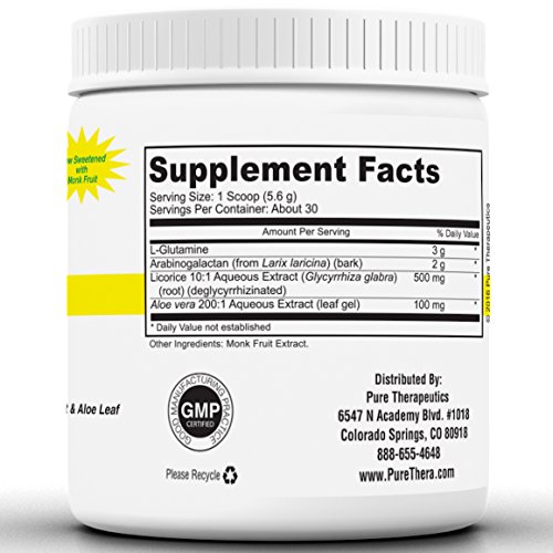 Leaky Gut Defense features five specialized ingredients for enhanced gastrointestinal support. ✔ L-Glutamine, the most abundant free form amino acid in the body, is very important for maintaining gastrointestinal and stimulated immune cell functioning. It is an important transporter of nitrogen (and carbon) in the body and therefore, is vital in wound healing.* ✔ Arabinogalactan, a polysaccharide derived from the Larch tree, contributes fermentable fiber to this formula in addition to having immuno-stimulatory properties. It minimizes ammonia synthesis and absorption, enhances production of short chain fatty acids and increases the gut microflora population.* ✔ Licorice Root Extract 10:1(deglycyrrhized) is a concentrated extract that has been processed to remove glycyrrhizin, thus eliminating any risk of licorice-associated side effects. It is anti-inflammatory, antispasmotic and has laxative and soothing effects.* ✔ Aloe Leaf Extract (standardized to 50% polysaccharides), used for thousands of years, is perhaps most well-known for healing of damaged epithelial tissue, including the bowel lining. The aloe extract used in Leaky Gut Defense does not have a laxative effect because the bitter principles have been removed.* ✔ Sweetened with Monk Fruit, monk fruit benefits include: fights free radicals, lowers risk of obesity, acts an an anti-inflammatory and coolant, combats infections, fights fatigue, works as a natural antihistamine and so much more!* All Pure Therapeutics Formulas Meet or Exceed cGMP Quality Standards. This product is manufactured in the United States in a GMP-certified facility.Feature