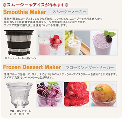 대히트의 슬로우 쥬스의 결정판 해고《스사이렌토쥬사》가 더욱 더 기능&성능 업 해 신 등장!착즙비율의 향상,스마트 캡 장비등에 덧붙여 지금 화제의《스무지메카》와 플로우의《데자토메카》기능도 추가!