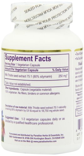 -. Title : Paradise Herbs Milk Thistle 75:1 80% Vegetarian Capsules