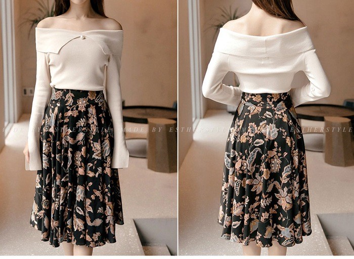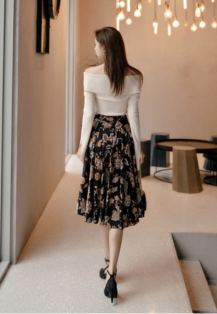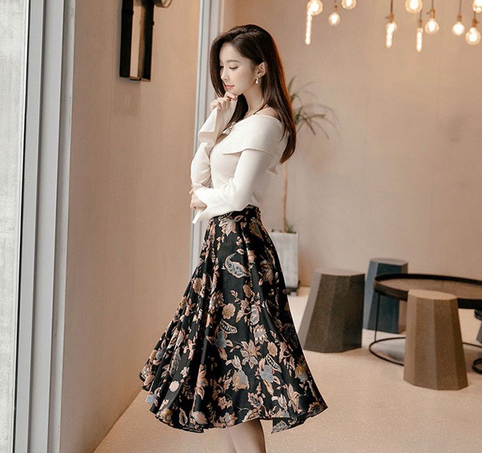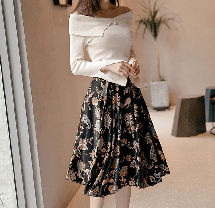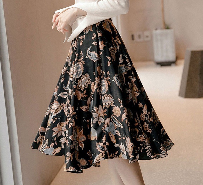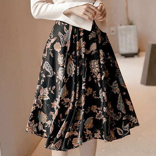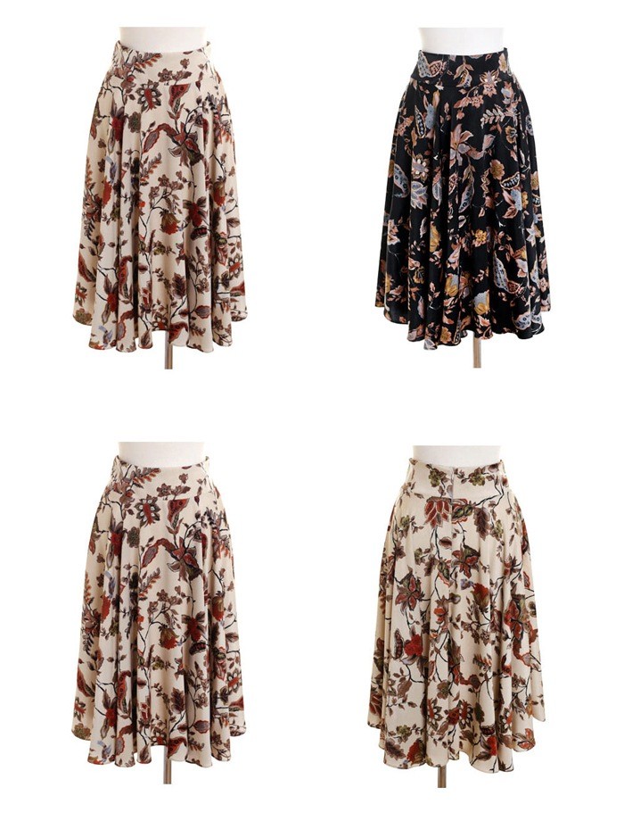 商品名:スカート フレアスカート 花柄 フラワー 膝丈
