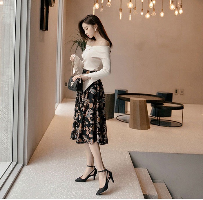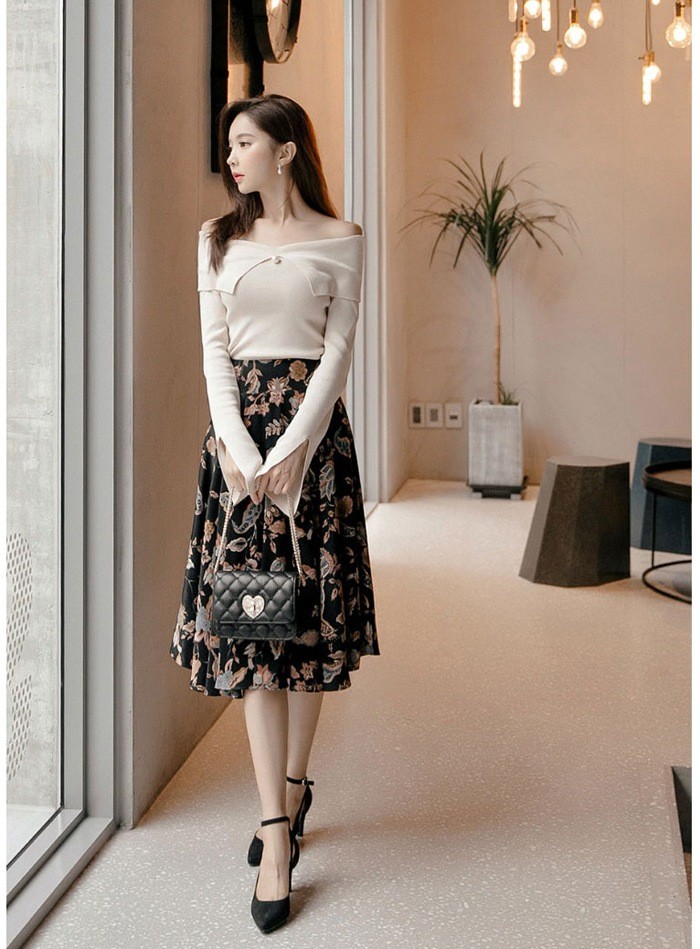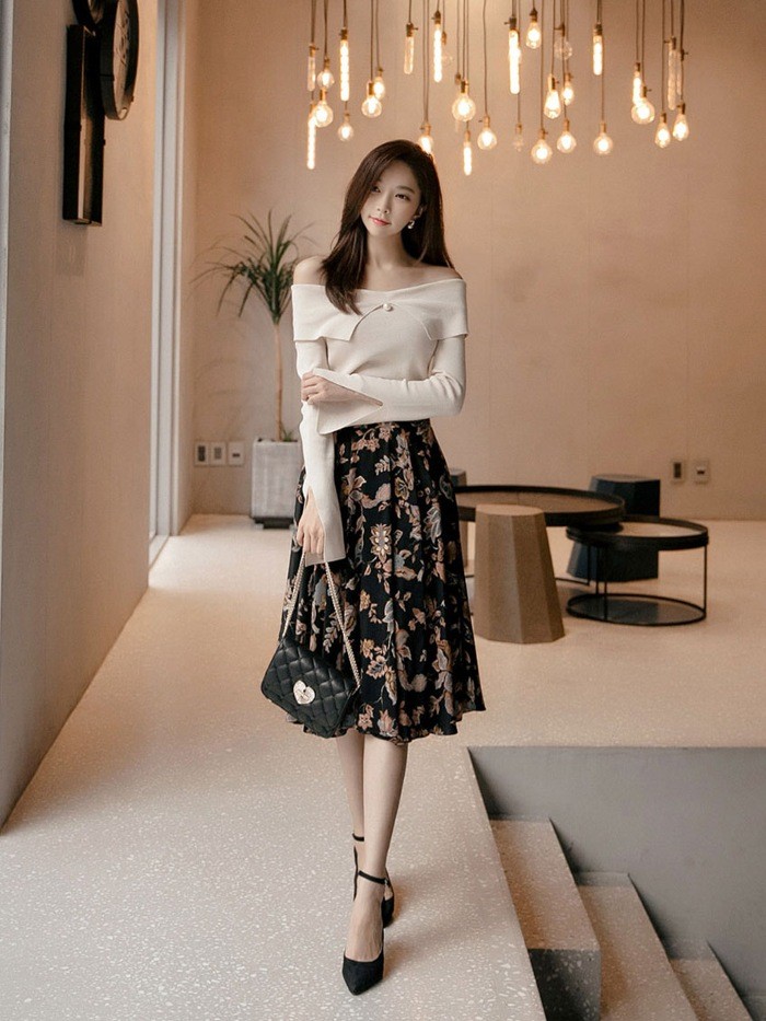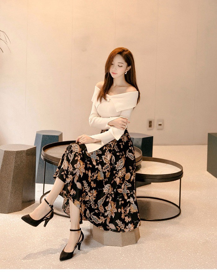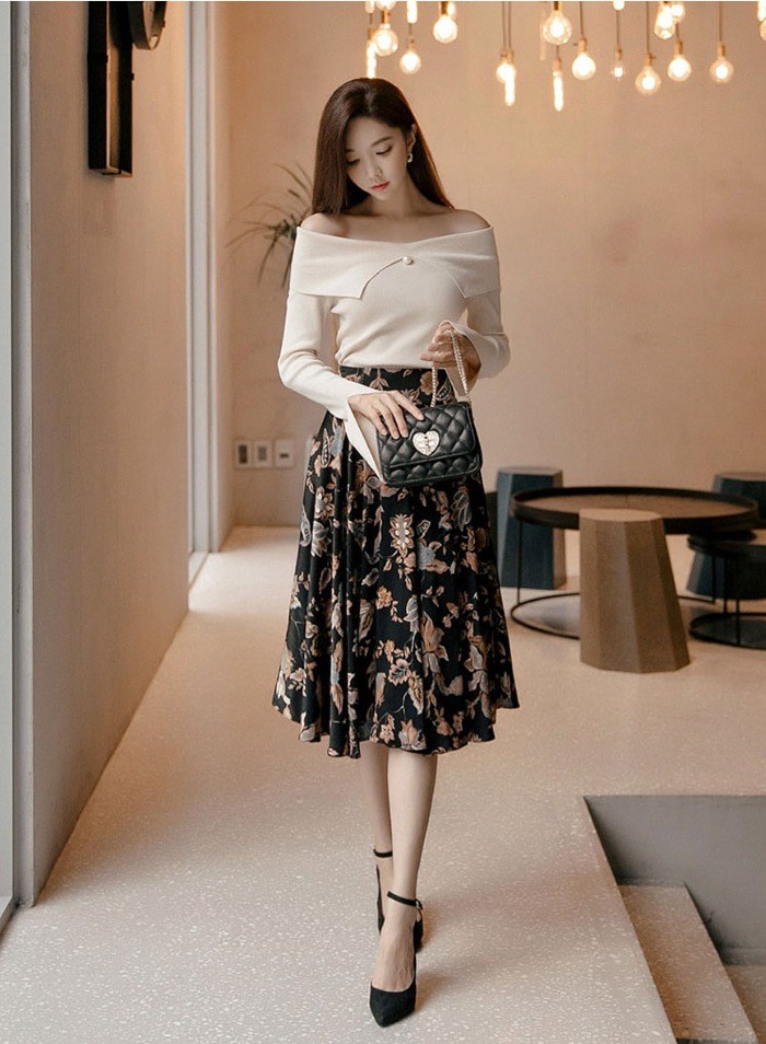 商品名:スカート フレアスカート 花柄 フラワー 膝丈