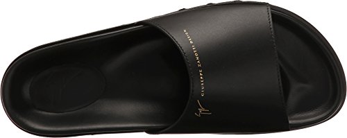 Binding : Apparel Product Description Indulge in a look of carefree cool when you slip into your Giuseppe Zanotti™Sandals. Leather upper. Large synthetic strap across vamp embossed with the iconic brand logo across the top. Slip on design. Open toe silhouette. Leather lining. Lightly padded leather footbed. Stacked synthetic sole. Made in Italy. This item may ship with an attached security tag. Merchandise returned without the original security tag attached or a damaged tag may not qualify for a refund. Measurements: Weight: 9 oz Product measurements were taken using size 38 (US Women's 8), width M. Please note that measurements may vary by size. 0
