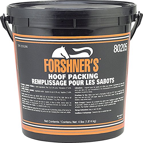Product Description Pine Tar, Petrolatum, Parafin. Pack into hoof cavity to aid in preventing hardened frogs, contracted heels and hoof dryness. Contains vital oils and other essential ingredients. Thick, emollient formula keeps working from the time it s packed into the hoof until it s removed.