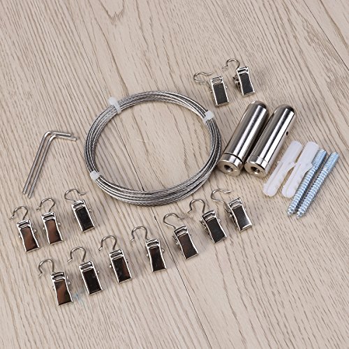 - Multi-purpose, can be used as clothesline to hang clothes or curtain drape and even hang photos with 12pcs stainless steel clips with hook.