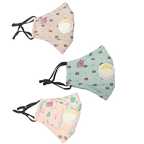 WEMORE 3-Pack PM 2.5 Children Cartoon Masks Reuseable Dustproof Antibacterial Mouth Mask with Exhale Valves