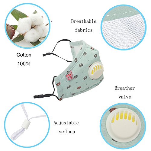 - Function: anti-pm2.5, cold, dust, fog haze, anti-vehicle exhaust. Exhalation Valve allows air to flow out freely, cotton fabric make your kids feel more comfortable.
