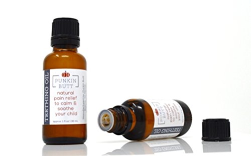 Studio : Punkin Butt Publisher : Punkin Butt Binding : Baby Product Product Description Baby's first tooth is a joy to behold, until discomfort arrives in the form of gum sensitivity, fussiness, irritability, and refusing food. Gently massaging Punkin Butt Teething Oil, made with essential oils of chamomile, clove and peppermint, on baby's gums will help banish teething pain and soothe baby (and probably the entire family). Packaged in an amber glass bottle to protect the essential oils. Ingredients: Helianthus annuus (Organic Sunflower) Oil, Proprietary Blend of Essential oils (chamomile, clove, peppermint), Simmondsia Chinensis (Jojoba) Seed Oil. 0