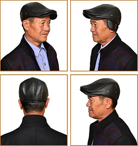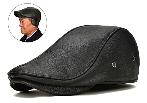 (Roffatide)/Accessories/Hats/DIRECT FROM USA/Roffatide Men Leather newsboy Cap With Earflap Cabby IVY Golf Beret Driving Hunting Flat Hat Wi...
