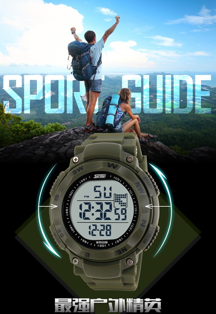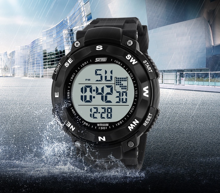 | Many Function Jam tangan SKMEI memiliki fungsi seperti penunjuk hari dan bulan、 stopwatch、 waterproof dan stopwatch.