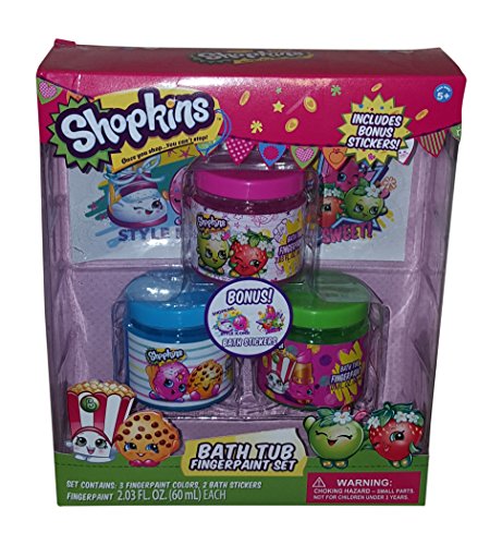 -. Feature : Shopkins Bathtub playset includes 3 fingerpaints and 2 stickers / 2 Fl Oz Each NON TOXIC Bathtub Fingerpaints in Pink, Blue and green