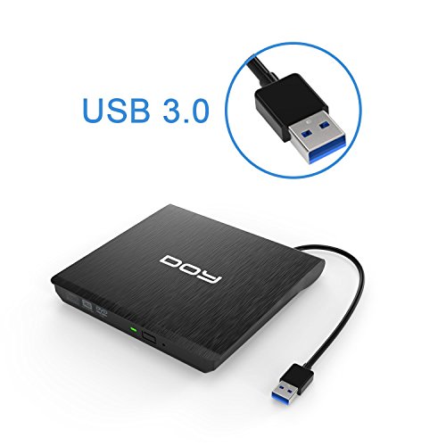 External DVD Drive, DOY USB 3.0 Burner DVD +RW/CD +RW Drive with Embedded USB Cable for Laptops PC, Desktop, Apple Macbook, Macbook Pro, Macbook Air Support Mac OSX Windows Vista/ 7/ 8/ 10(Black)