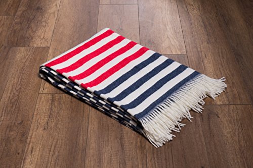 SIZE & COLOR: 60”x 80” . Striped (Navy and Red). Compliment your bed, couch, sofa or favorite chair with the unique range of colors to suit any palette.