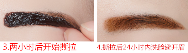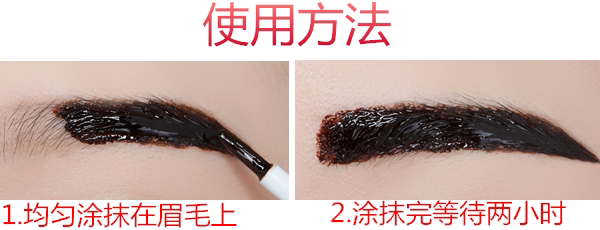 在洗完脸没有涂抹任何东西的情况下,涂在眉毛上,稍微厚一些,等2个小时干透之后揭下来(不会把眉毛撕下来的),而且颜色可以维持2-3天,建议睡前使用,在皮肤上停留时间越久颜色越深哦,成分都是对肌肤没有刺激的,放心使用哦。